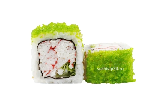 "снежный краб", лист салата, спайси соус, кунжут, икра масаго